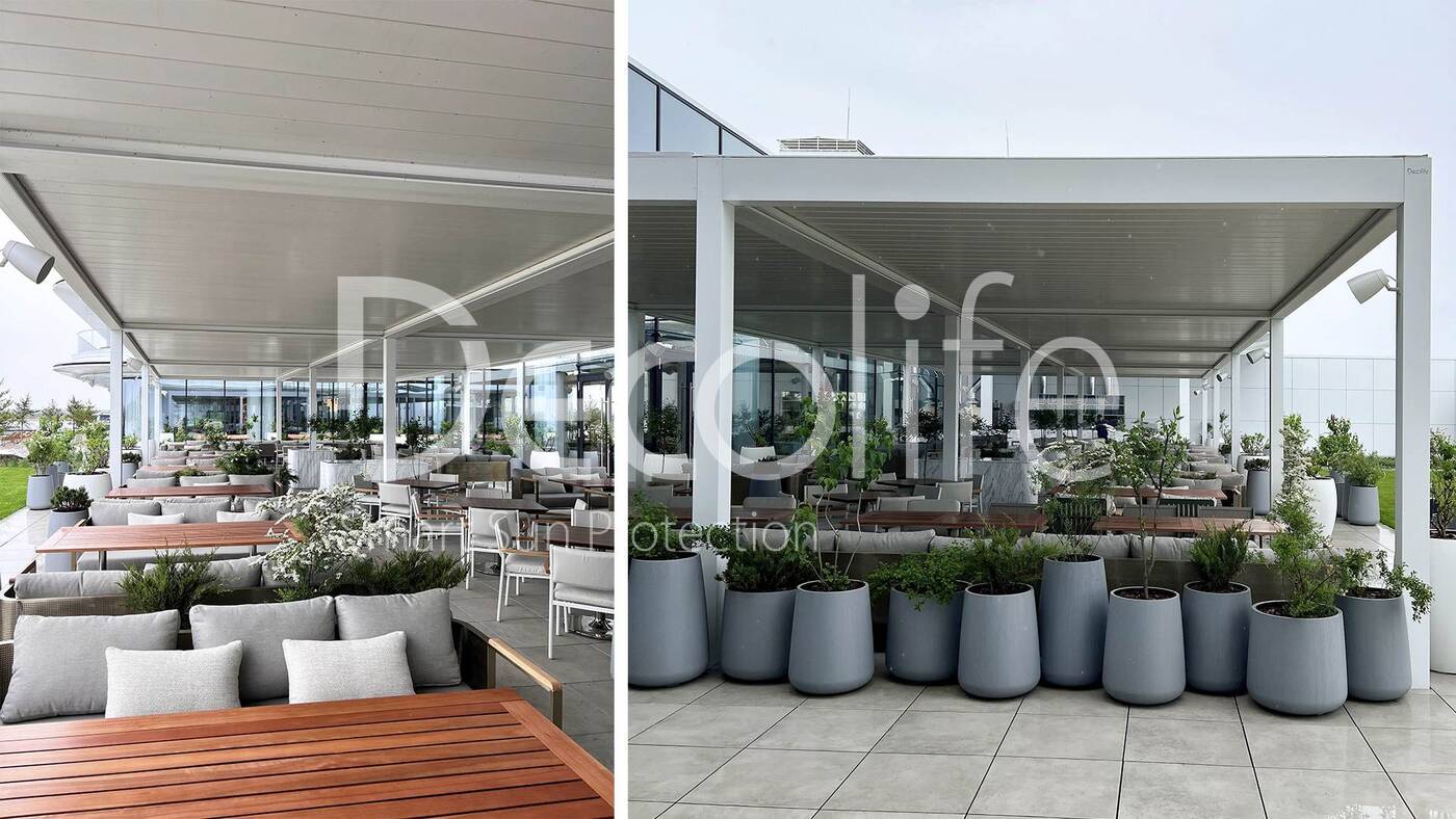Пергола Bioclimatic B500-20П, объект реализован партнером ООО "СТЕЛЛ МС" купить для кафе и ресторана