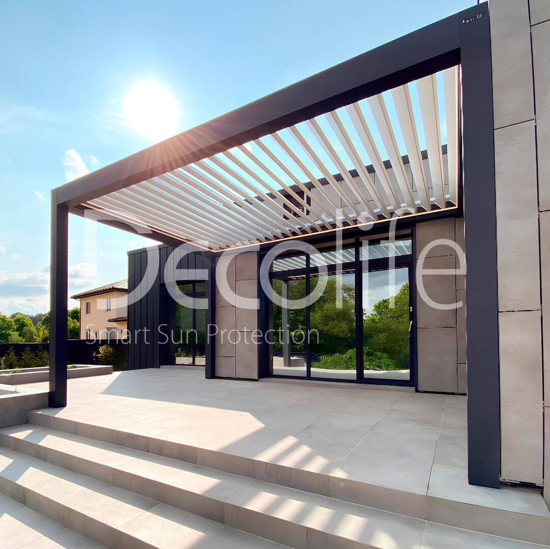 Компания Decolife является самым крупным и успешным производителем на рынке солнцезащитной продукции в России, мы специализируемся на производстве пергол и солнцезащитной продукции, включая маркизы и вертикальные системы, а также на производстве теплого и холодного алюминиевого остекления.