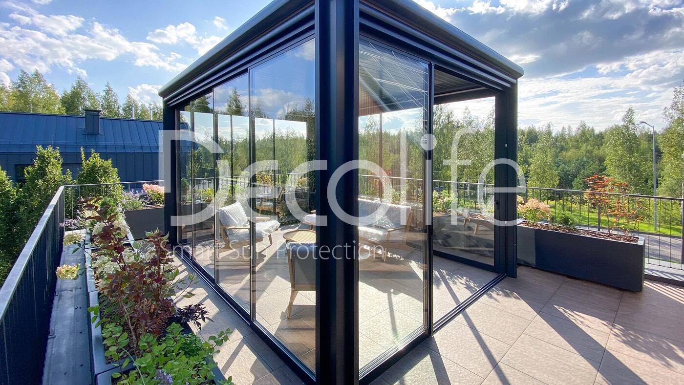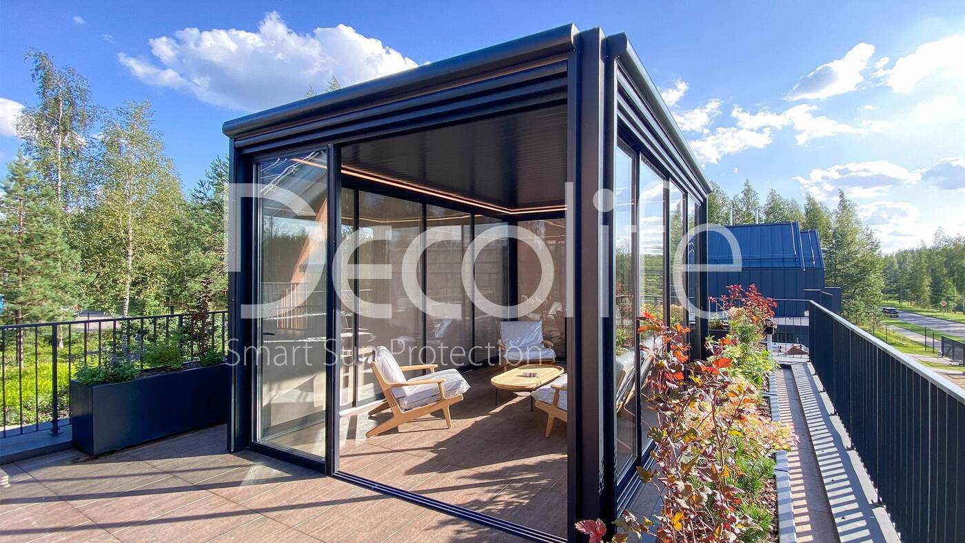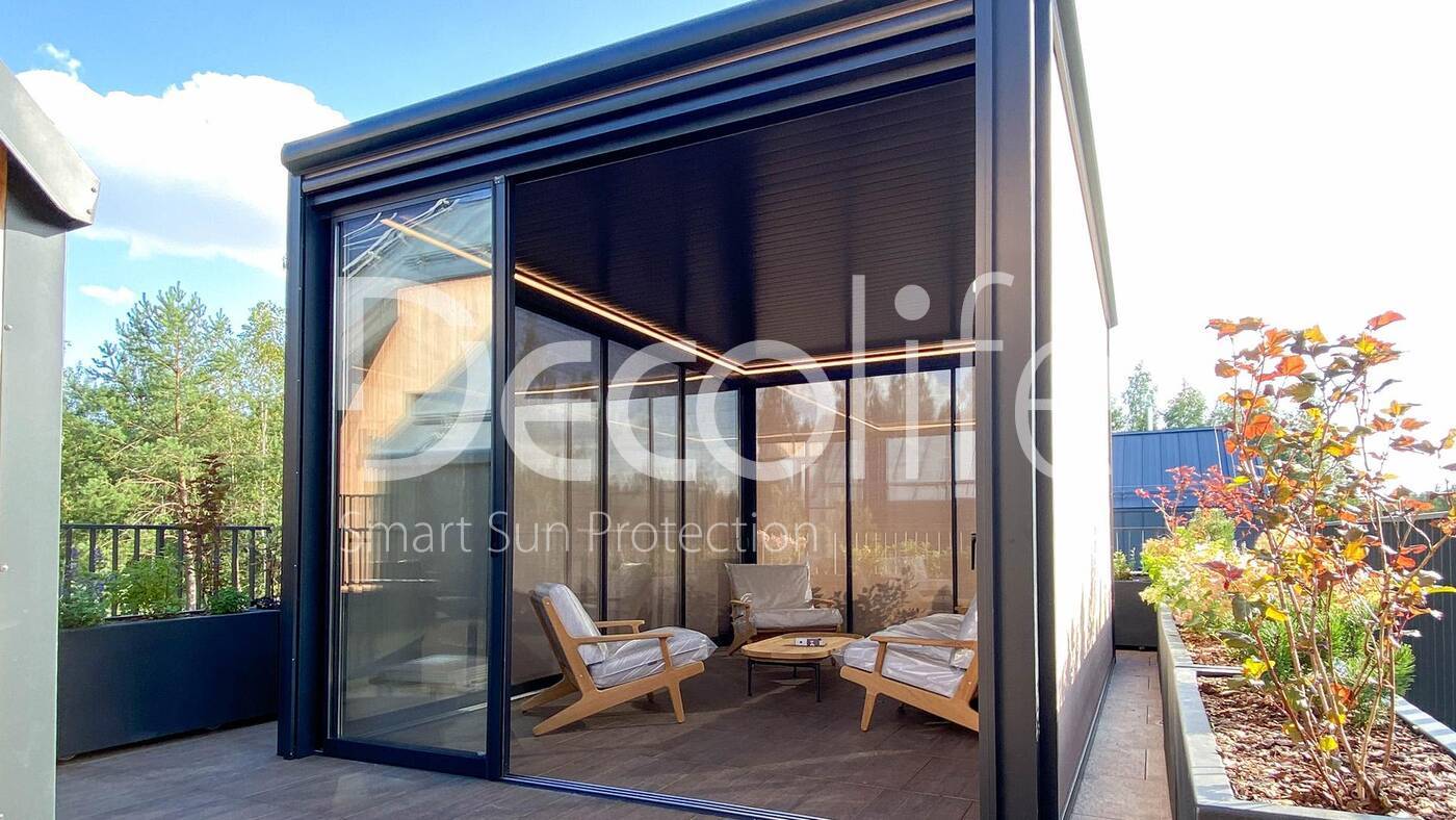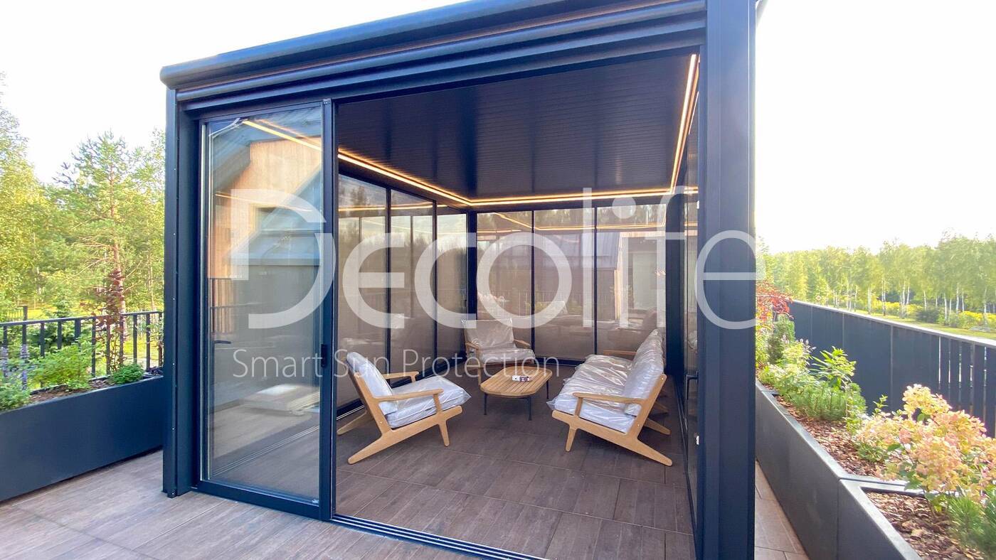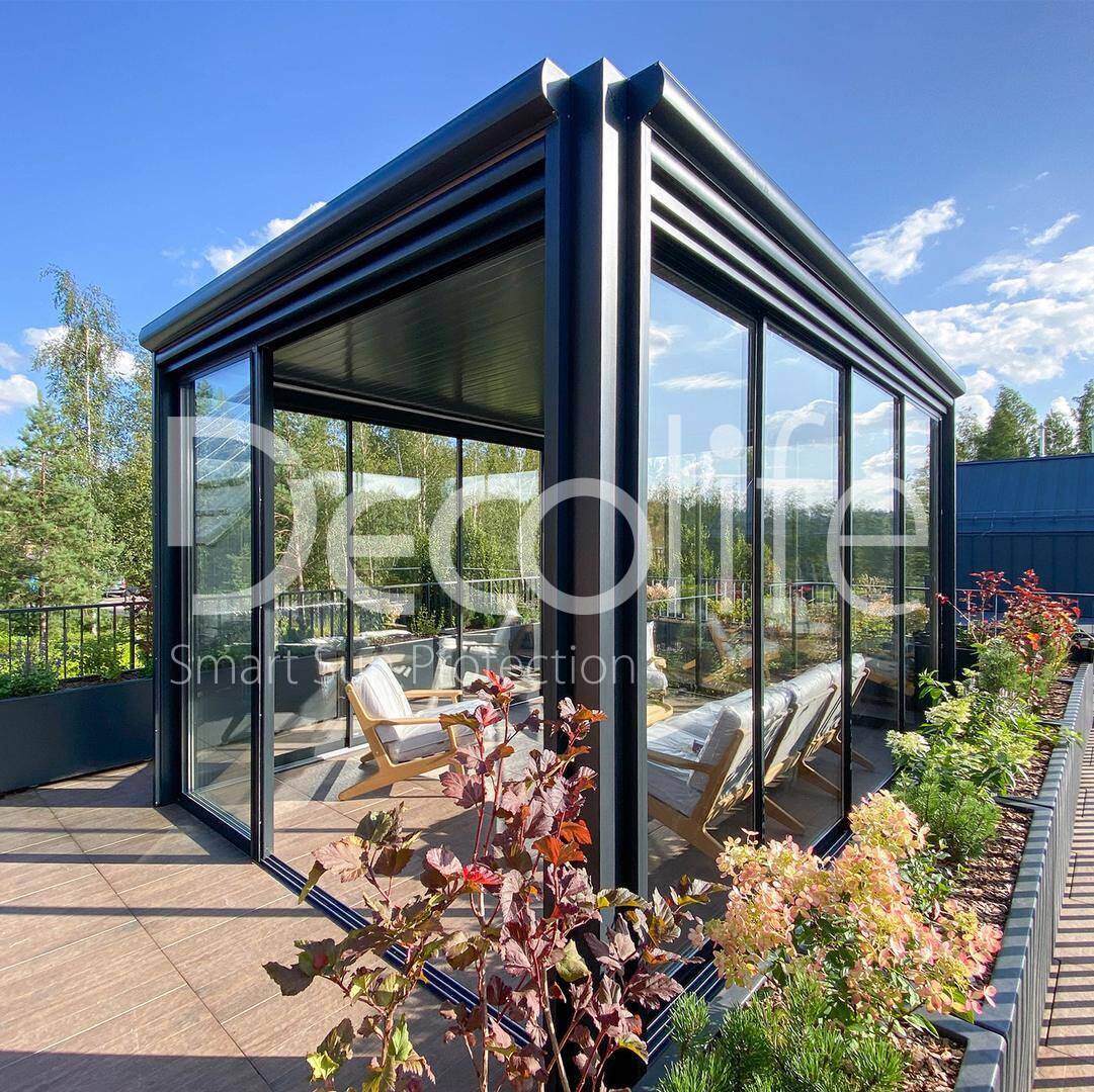 Пергола Decolife Bioclimatic + Остекление S500 купить для террасы, дачи, пристроенная к дому
